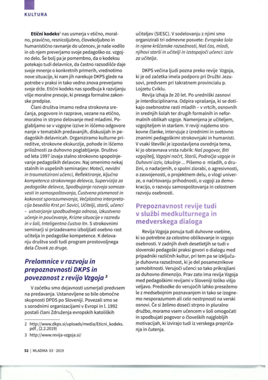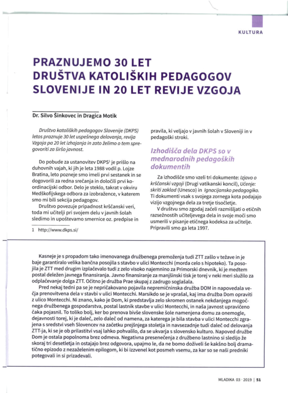 O DKPS in o reviji Vzgoja informacija tudi v Katoliškem tisku zunaj Slovenije