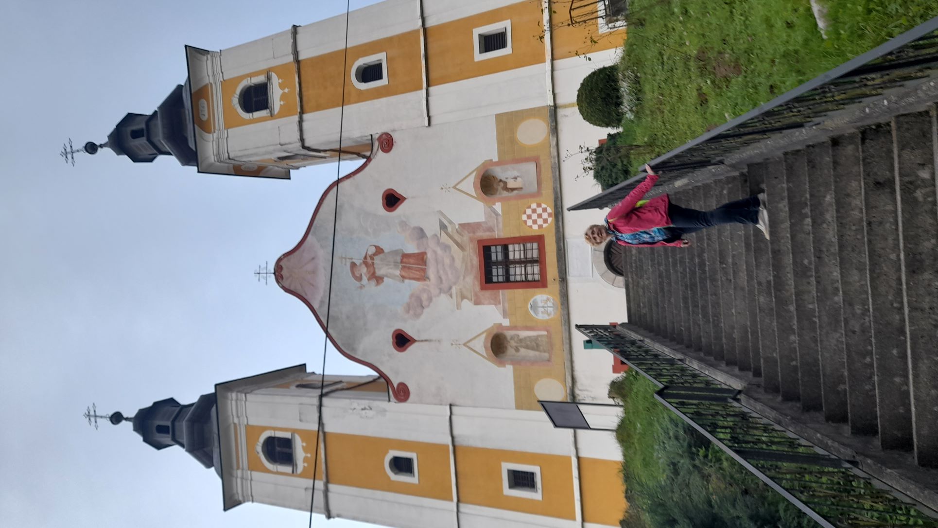 Deževalo je prvi dan, pa tudi kasneje nama vreme ni bilo zelo naklonjeno. Pa sva pot po Hrvaški vseeno srečno malo prehodila in malo prevozila. Startala sva v Sesvetah nad Zagrebom in prvi dan prišla do Marije Bistrice, ki je največje hrvaško Marijino romarsko središče. Naslednji dan je Vido peš, jaz pa sem mu sledila malo z vlakom, z avtom in malo peš do planinskega doma na Ivanščici, kjer sva prenočila. V nedeljo dopoldne sva bila že pri maši v Varždinski stolnici in do večera sva prišla do Železne gore sredi zagorskih goric. Seveda tudi tokrat hibridno: Vido peš, jaz pa okrog 15 km peš, ostalo pa z avtom.