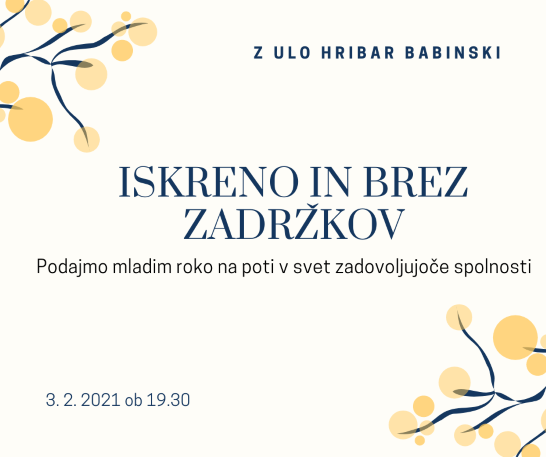 Iskreno in brez zadržkov: podajmo mladim roko na poti v svet zadovoljujoče spolnosti. Pogovorni večer z Ulo Hribar Babinski