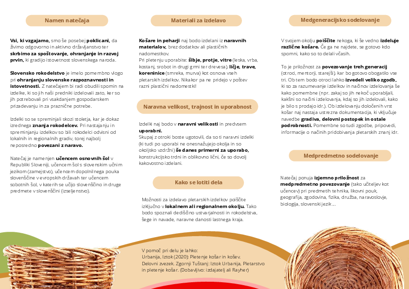 - Prva triada: izdela pleteno podnožje košare, podnožje za pehar, podstavek za posodo.