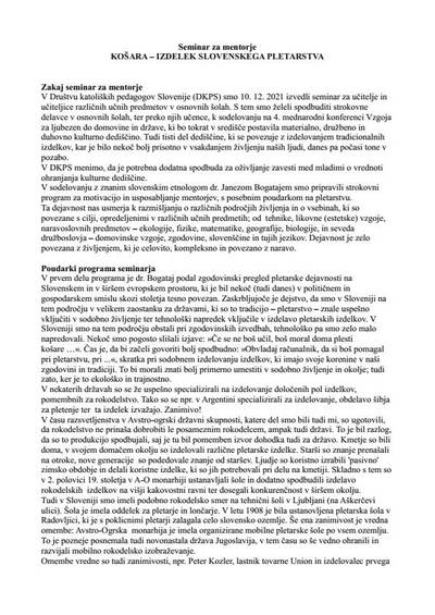 Izobraževanje za mentorje: Natečaj Košara - izdelek slovenskega pletarstva 2021/2022