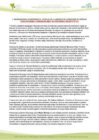 Vse, kar smo na konferenci slišali in videli, nam vliva veselje nad slovenstvom, nad tem, kar smo in kar želimo ostati. Poraja pa se velika odgovornost in vrsta nalog na mnogih področjih: skrb za ohranjanje jezika, za spoznavanje in poučevanje zgodovine slovenstva ter za skrben odnos do vere in kulture. Pozdravni nagovori so izražali veselje nad odločitvijo DKPS, da organizira konferenco. In zakaj smo se odločili za organizacijo? V uvodniku v Zbornik konference urednica pravi takole: