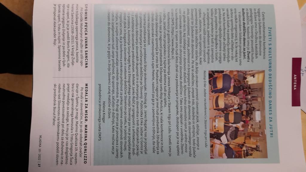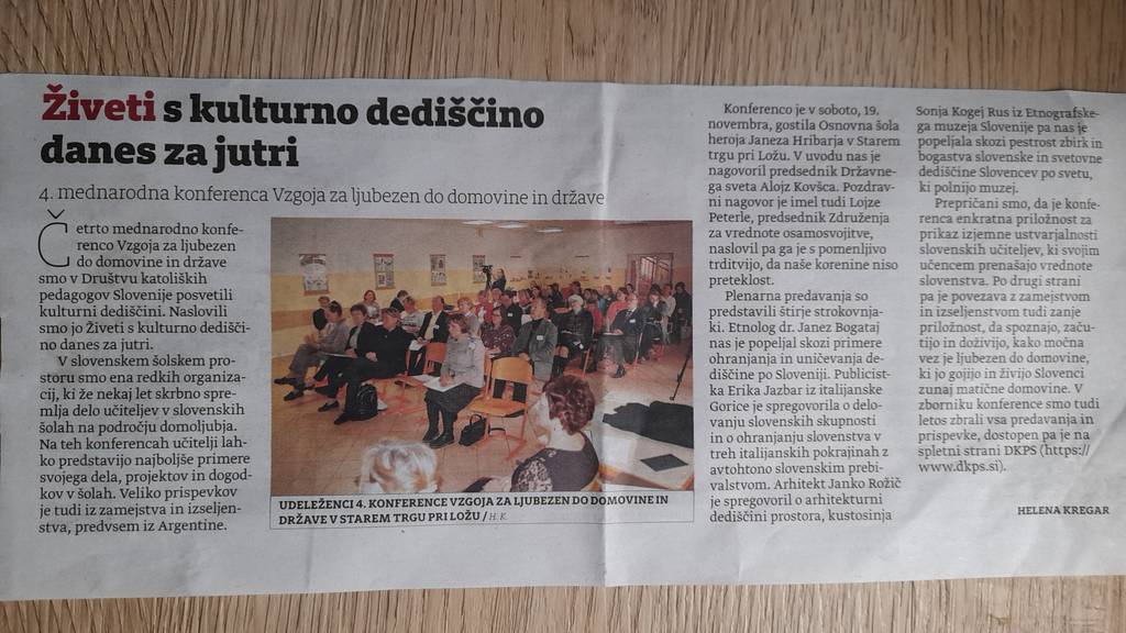 Revija Novi glas - tednik slovencev v Italiji, Vzgoja za ljubezen do domovine in države: Živeti s kulturno dediščino danes za jutri, 15. december 2022, str. 2., avtorica: Helena Kregar.