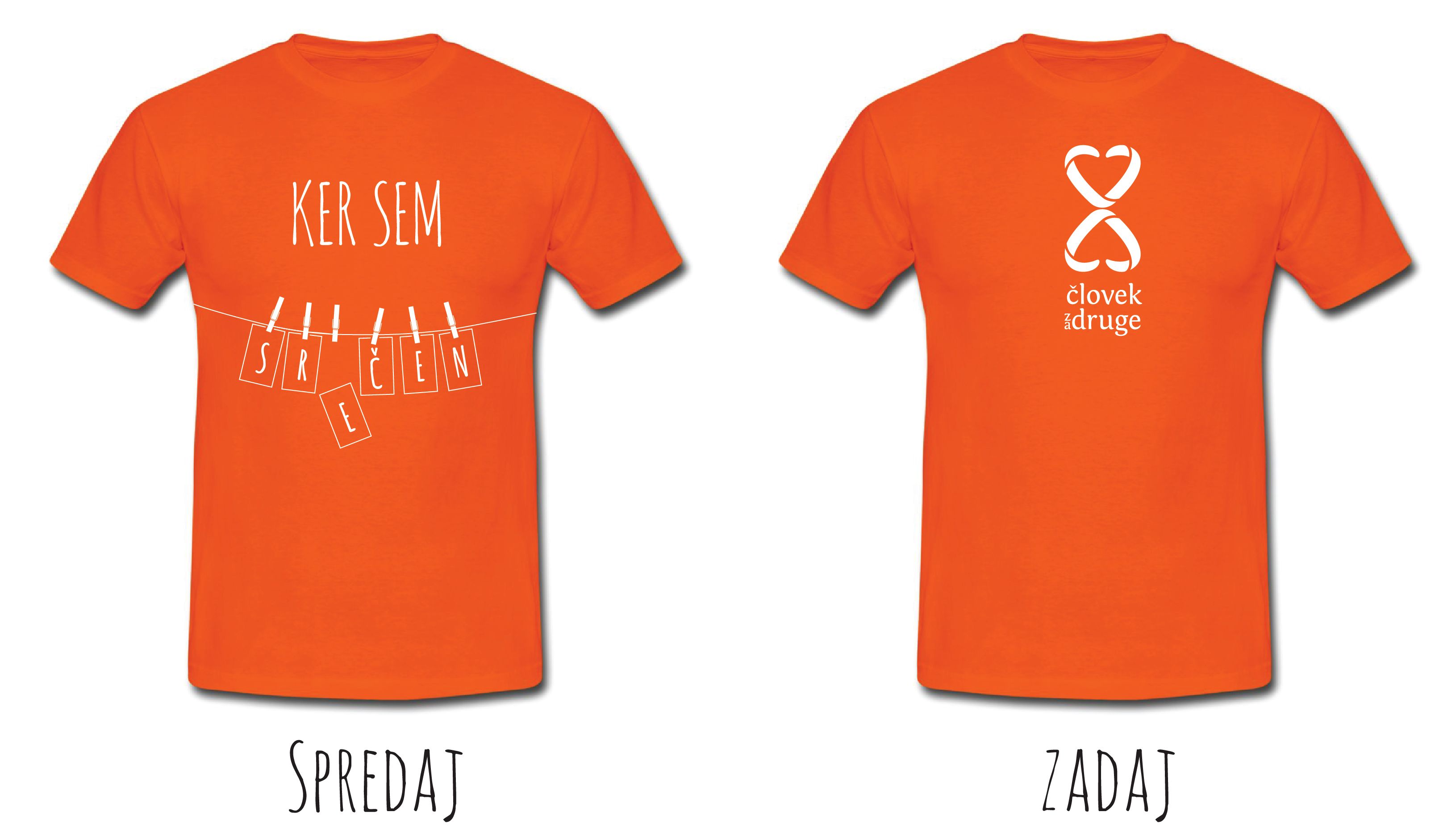 * oranžna, z napisom: spredaj: "Ker sem srčen, sem srečen", zadaj simbol programa in napis "Človek za druge" (na voljo kroj S, M, L)