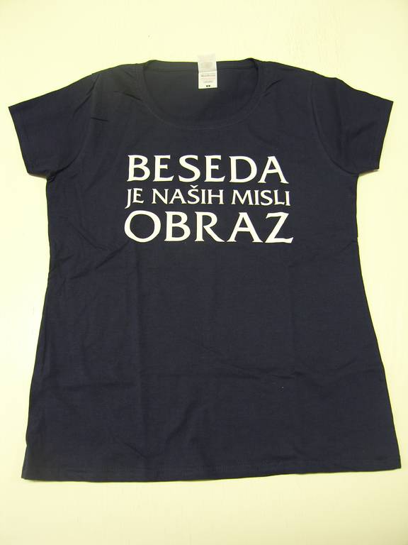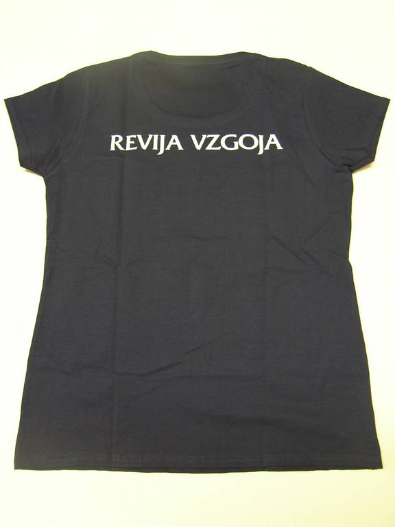 * temno modra, z napisom: zadaj: "revija Vzgoja", spredaj: "Beseda je naših misli obraz" (na voljo navaden kroj S, M, L, XXL; ženski kroj S, M, L, XL)